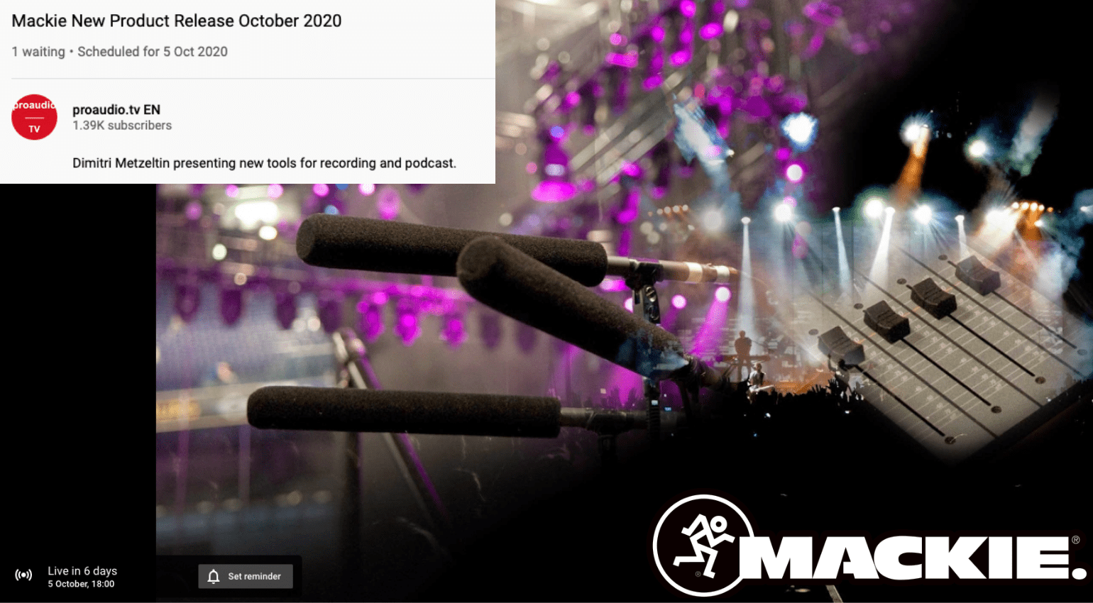 <p><img width="128" height="71" src="https://www.gearnews.com/wp-content/uploads/2020/09/Mackie-Product-teaser-128x71.png" class="attachment-rumors size-rumors wp-post-image" alt="" loading="lazy" style="margin-bottom:10px;" srcset="https://www.gearnews.com/wp-content/uploads/2020/09/Mackie-Product-teaser-128x71.png 128w, https://www.gearnews.com/wp-content/uplo...00x166.png 300w, https://www.gearnews.com/wp-content/uplo...24x565.png 1024w, https://www.gearnews.com/wp-content/uplo...68x424.png 768w, https://www.gearnews.com/wp-content/uplo...36x848.png 1536w, https://www.gearnews.com/wp-content/uplo...60x199.png 360w, https://www.gearnews.com/wp-content/uplo...10x281.png 510w, https://www.gearnews.com/wp-content/uplo...70x425.png 770w, https://www.gearnews.com/wp-content/uplo...-95x53.png 95w, https://www.gearnews.com/wp-content/uplo...teaser.png 1540w" sizes="(max-width: 128px) 100vw, 128px" />It looks like Mackie is about to release new gear aimed at the podcasting market! A holding page at proaudio.tv teases an upcoming release on 5 October. But what could it be?</p>