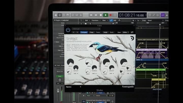 Puremagnetik's Shrike processes an octave-shifted reverb through a matrix of 4 LFOs